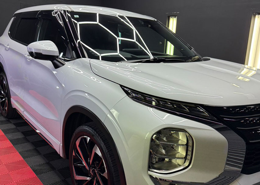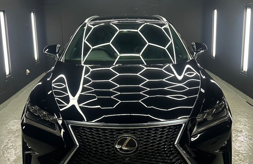 外的要因に左右されない安定した環境で、塗装状態を正確に見極め、GYEON様が定める基準に沿った施工を一台一台に実施。「どこで施工するか」「誰が施工するか」まで含めて品質だと考え、再現性のある美しさと持続性を追求しています。